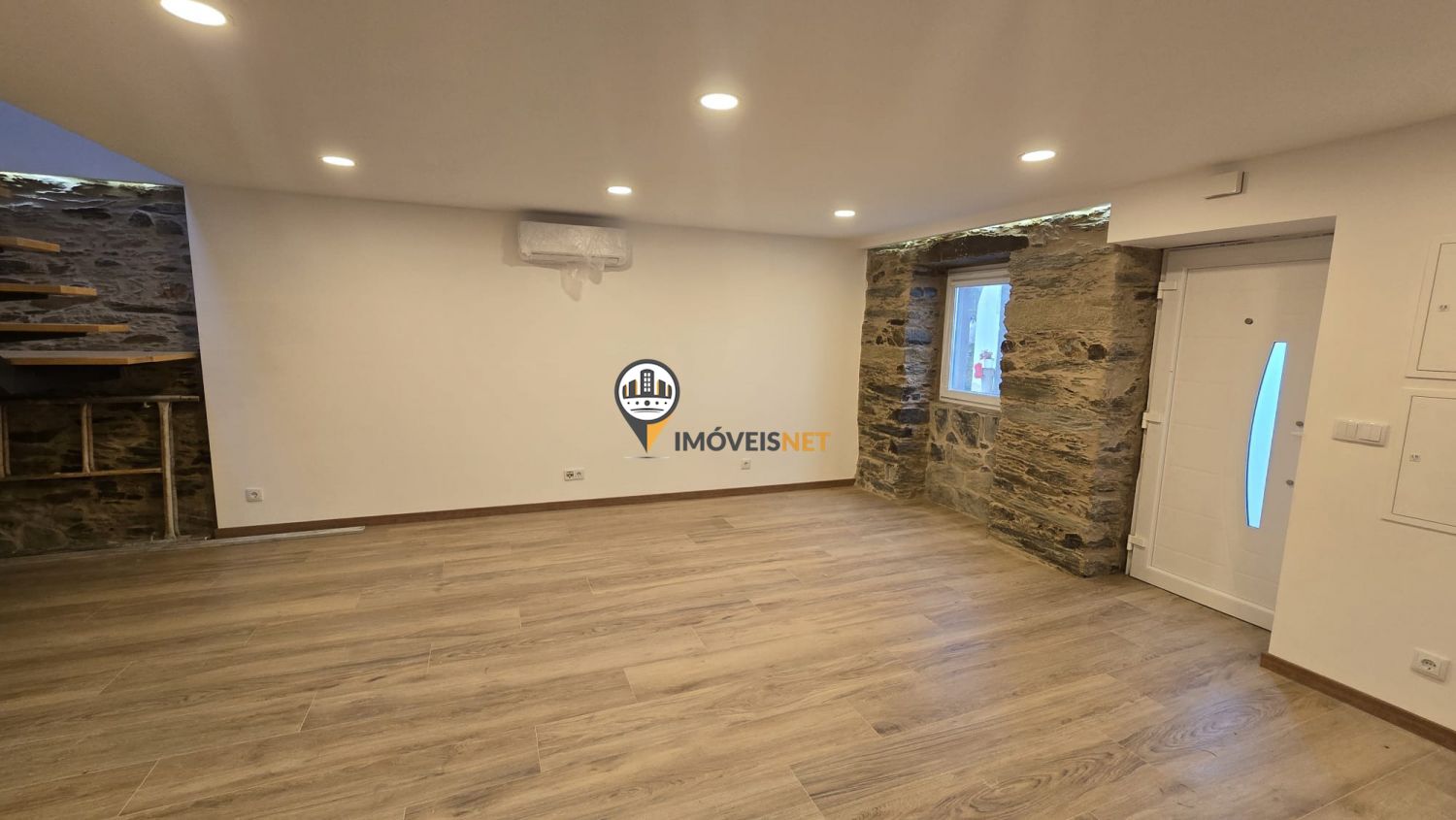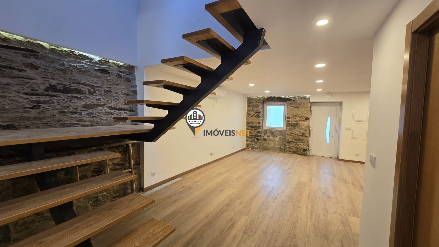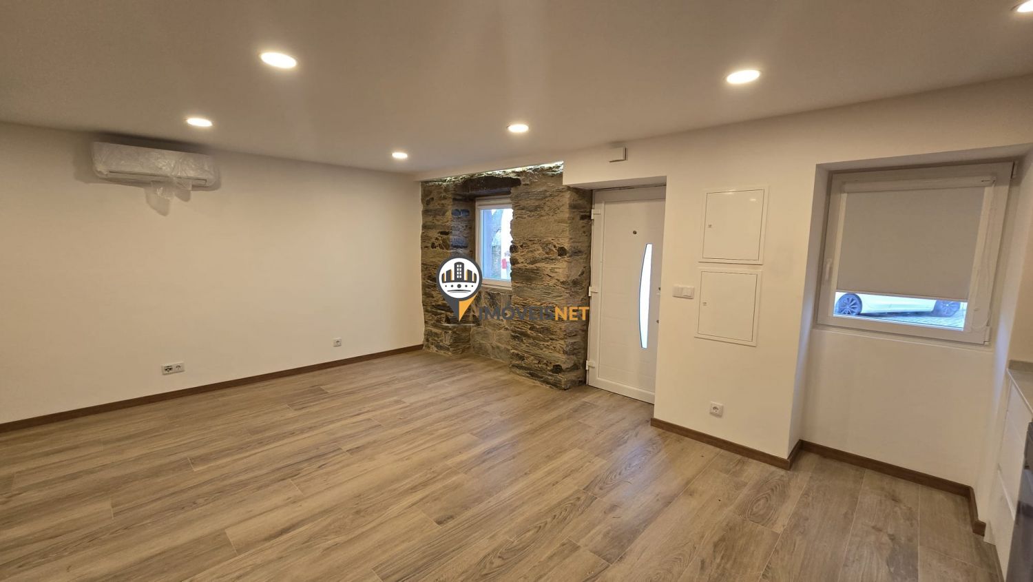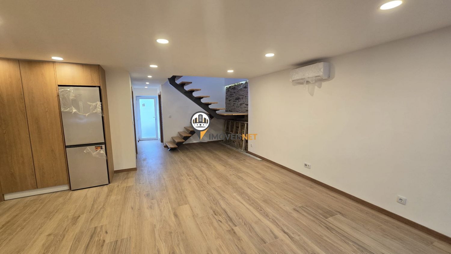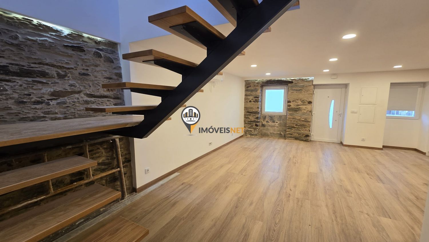 No rés do chão encontra uma ampla cozinha e sala em conceito open space, um quarto e uma casa de banho completa.