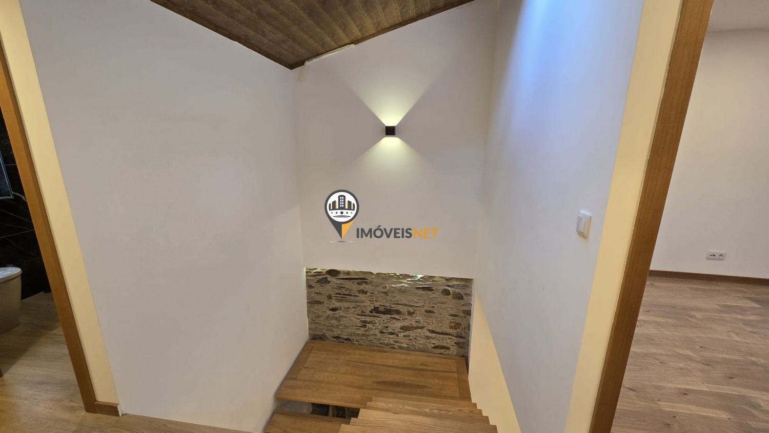 No 1.º andar dispõe de três quartos e uma casa de banho.
